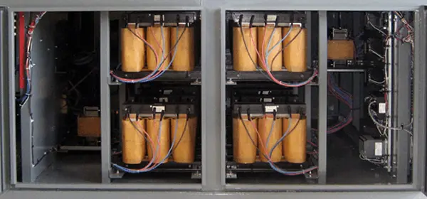 The Simplex Load Cube is an ultra-large capacity , fully portable, resistive/reactive Load Bank System intended for field use in testing, maintenance and performance proving of large generating systems. The Load Cube is rated 2500kw, 1875kvar at 400-600v commercial AC voltages. The Load Cube is typically used to test large diesel generators, turbines, paralleled generators and shipboard generators.