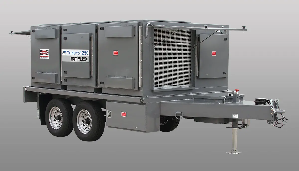 The Simplex Trident 1250R Trailer load bank is ideal for field testing in the performance of start-up and commissioning activities, service contracts and engine generator maintenance. Rentals are available in 1250kw capacities. Operator interface is via touchscreen. Multiple Tridents may be networked together to yield total capacities of tens or hundreds of megawatts. Simplex trailers are built to DOT specification, NTM DOT certification label.